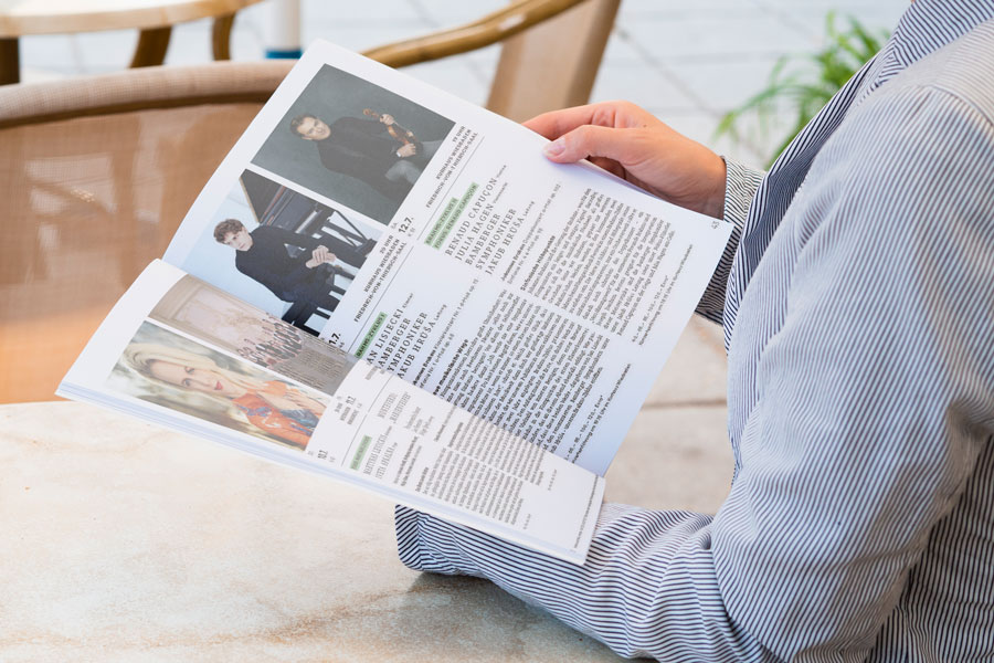 Bestellen Sie sich das umfangreiche Festivalprogramm 2026 in Printform direkt nach Hause und lernen Sie unsere Konzerte, Fokuskünstler, Themenschwerpunkte und Spielorte noch besser kennen. Die erhobene Bearbeitungsgebühr bekommen Sie direkt in Form eines Gutscheines in voller Höhe erstattet. Diesen können Sie direkt bei Ihrer Kartenbestellung einlösen.