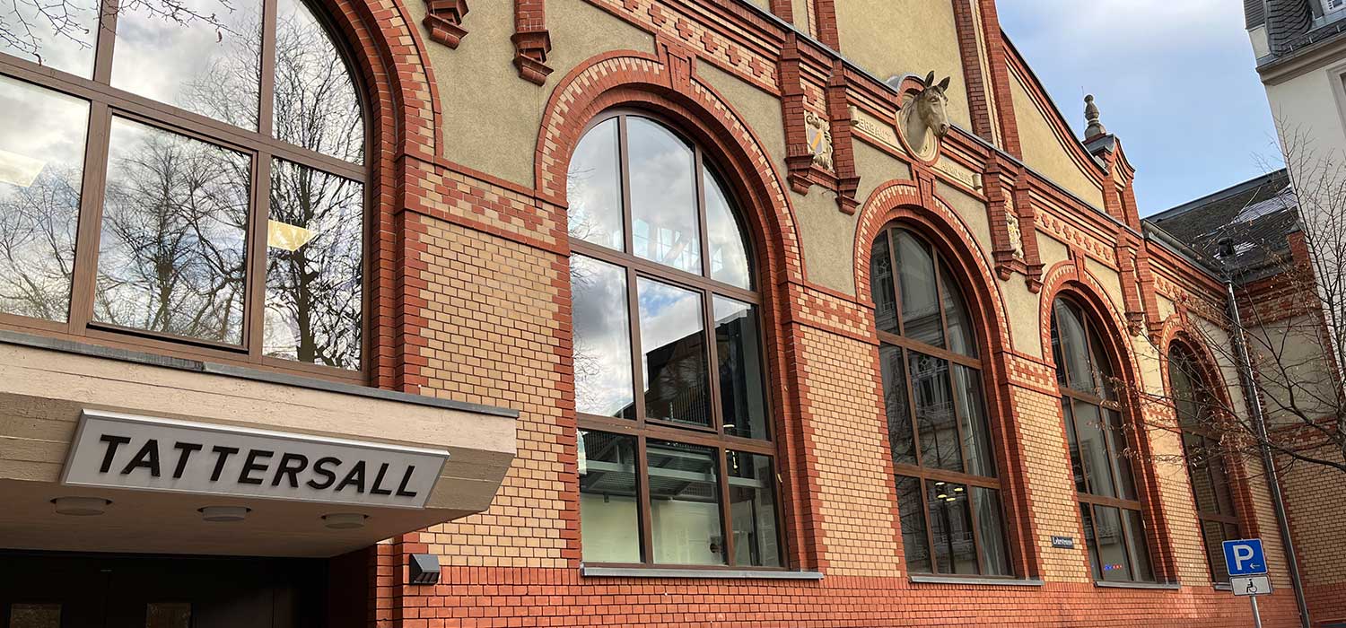 Der Tattersall Wiesbaden vereint Geschichte, Architektur und urbane Kultur zu einem einzigartigen Konzertort mitten im Bergkirchenviertel. 1905 als Reithalle nach englischem Vorbild für den Reitlehrer Ernst Weiß errichtet, umfasste der Tattersall - der Namen geht übrigens auf den englischen Stallmeister Richard Tattersall zurück - einst eine Holztribüne für bis zu 500 Besucher und Boxen für 80 Pferde.